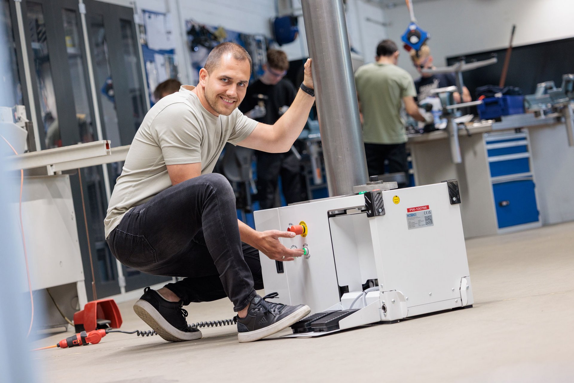 Drei Helfer haben wir aktuell im Einsatz. Klar, am Anfang lief es noch nicht ganz rund – die Eigenleistung war eher ausbaufähig. Aber nach etwas Feintuning durch unser Team zeigen die Cobots jetzt, was in ihnen steckt: „Zwei von ihnen montieren selbstständig einsatzfähige Teile und sorgen so für ordentlich Schub bei unserer Produktivität. Ein dritter hilft uns, neue Prozesse auszuprobieren“, erklärt Lukas Beining, der die Cobots mit angelernt hat. Kleine Roboter, große Wirkung!