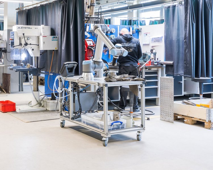 Fun Fact: Die Idee für den Einsatz von Cobots kam von unseren Auszubildenden. Sie waren es auch, die unseren ersten Cobot selbst konzipierten und programmierten.