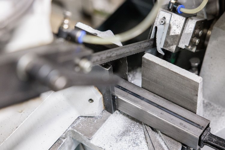 Mit unserer Bandsäge können die Azubis ihre Werkstücke, wie unsere Rohre, durch ein umlaufendes Sägeband präzise und sauber zurechtschneiden.