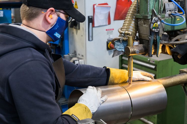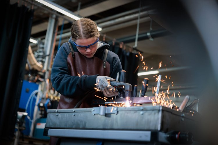 Unsere Azubis lernen das Schweißen an zwölf top ausgestatteten Arbeitsplätzen – alle bestückt mit MAG- und WIG-Schweißgeräten von Fronius. Der Vorteil: Die WIG-Geräte lassen sich einfach umrüsten, damit auch mit Elektroden geschweißt werden kann. So sind unsere Nachwuchsprofis für jede Herausforderung bestens ausgerüstet, um ihr Knowhow richtig auszubauen.